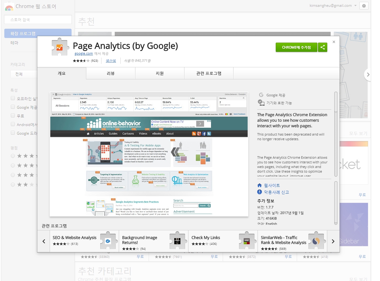 저는 개인적으로는 인페이지 클릭 분석 기능에 매료되어 이 확장프로그램을 사용하고 있습니다.