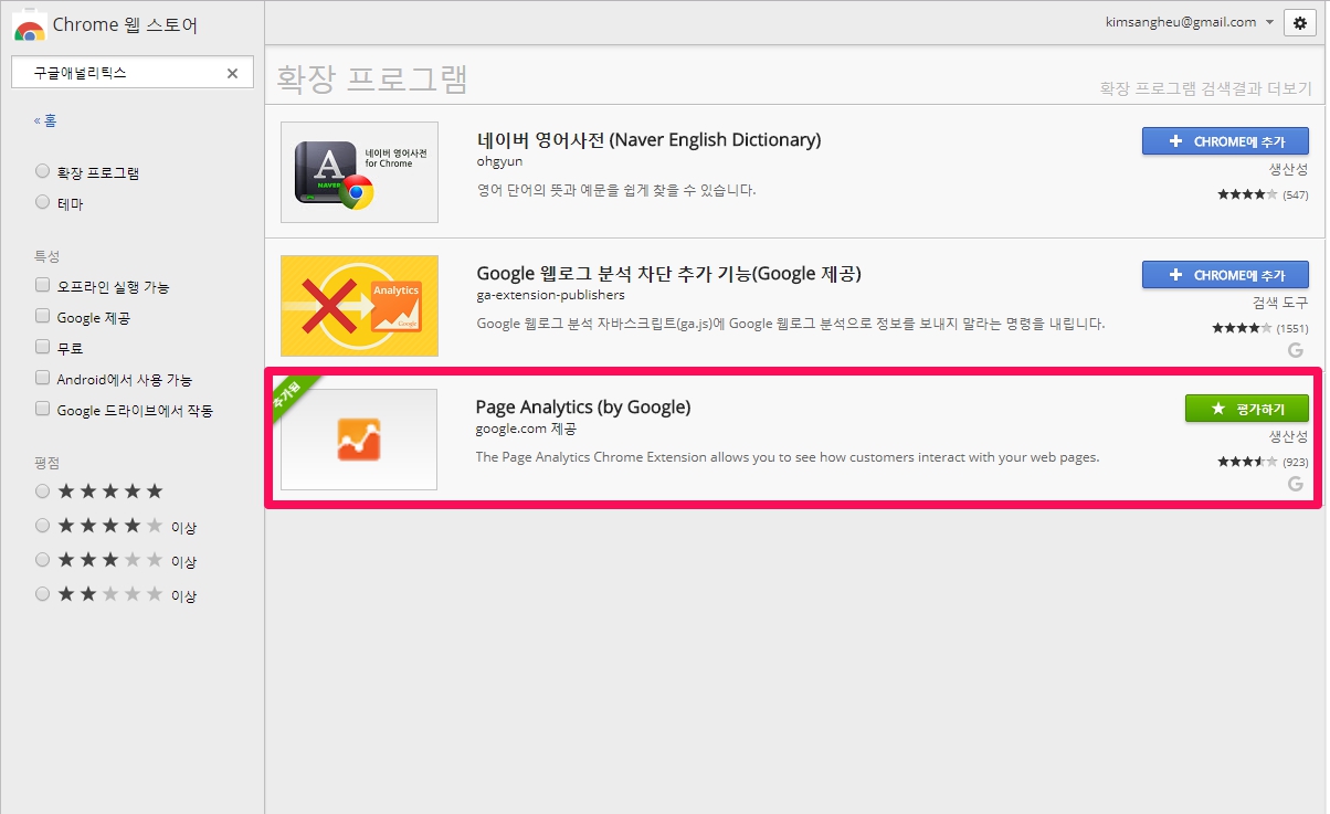 자료출처 : 1. 페이지 애널리틱스 Chrome 확장 프로그램