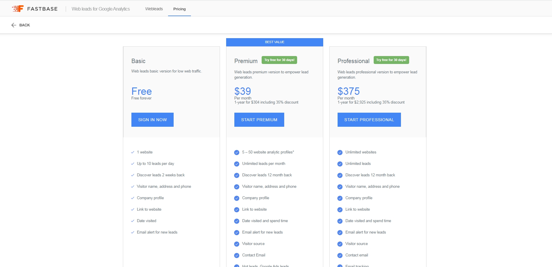 방문자 추적 소프트웨어는 확실히 존재하며 유료 제품에 대한 예산이 없으면 이것(Fastbase)이 유일한 선택입니다. 그러나 테스트 사례에서 확인 된 회사 수는 경쟁사 제품보다 훨씬 적습니다. G Leads 및 AdWords B2B 애드온이 제자리에없는 것처럼 보이며 회사가 공개 리스팅을하려고하는데 필요한 표준이 아니라 서두르고 불완전하게 느껴집니다. 추가 개발 계획이 있을지 모르지만 여전히 확신이 없습니다.