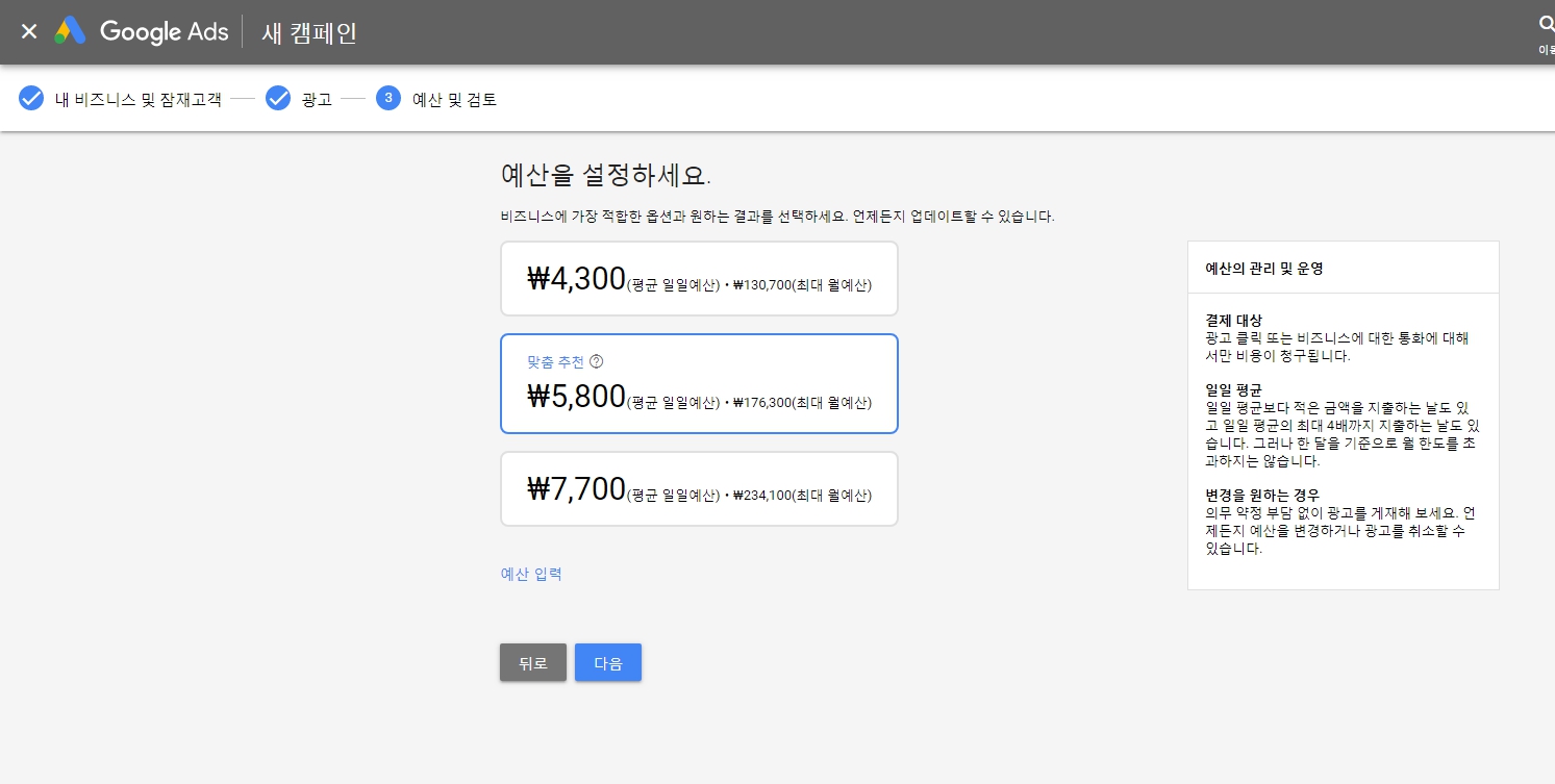 small buseiness 업체를 위해 예산을 알아서 표시해주어 편리합니다.