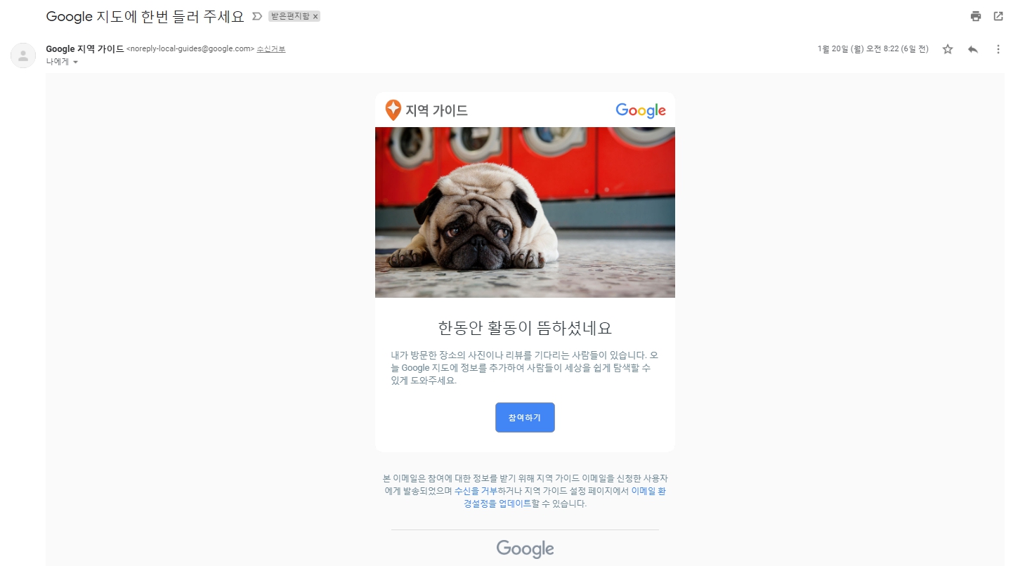 제가 구글 지역 가이드에 관심을 갖게 된 것은 우연히 받은 구글의 안내 메일에서 네이버, 다음 지도가 해결하지 못하는 유료 문제를 해결(무료)할 수 있을 것으로 생각되어서 입니다.