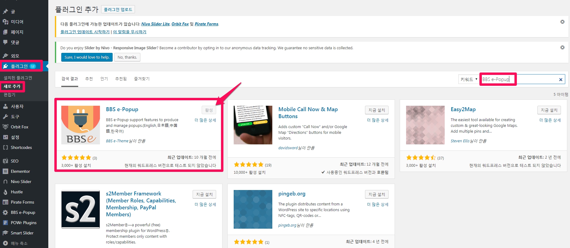 BBS e-Popup 설치 및 활성화