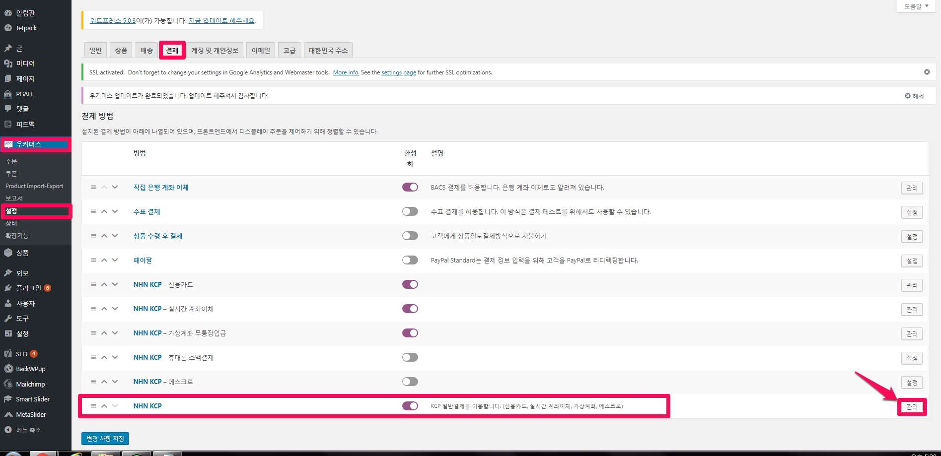 코드엠 결제 플러그인에서 NHN KCP 상점키 입력하기