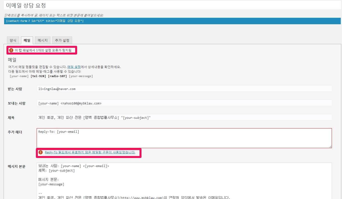 CONTACT FORM 7 : 워드프레스 폼메일(Form mail) plugin