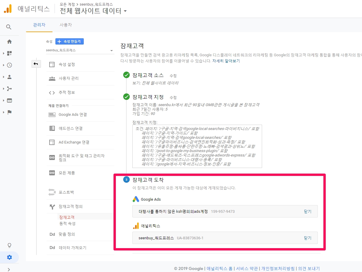 구글애드즈에 잠재고객 목록이 안 보이거나 잘 쌓이지 않고 있다면 구글 애널리틱스에서 잠재고객 목록을 클릭하여 검색사용불가가 발생하고 있는지 확인하세요.