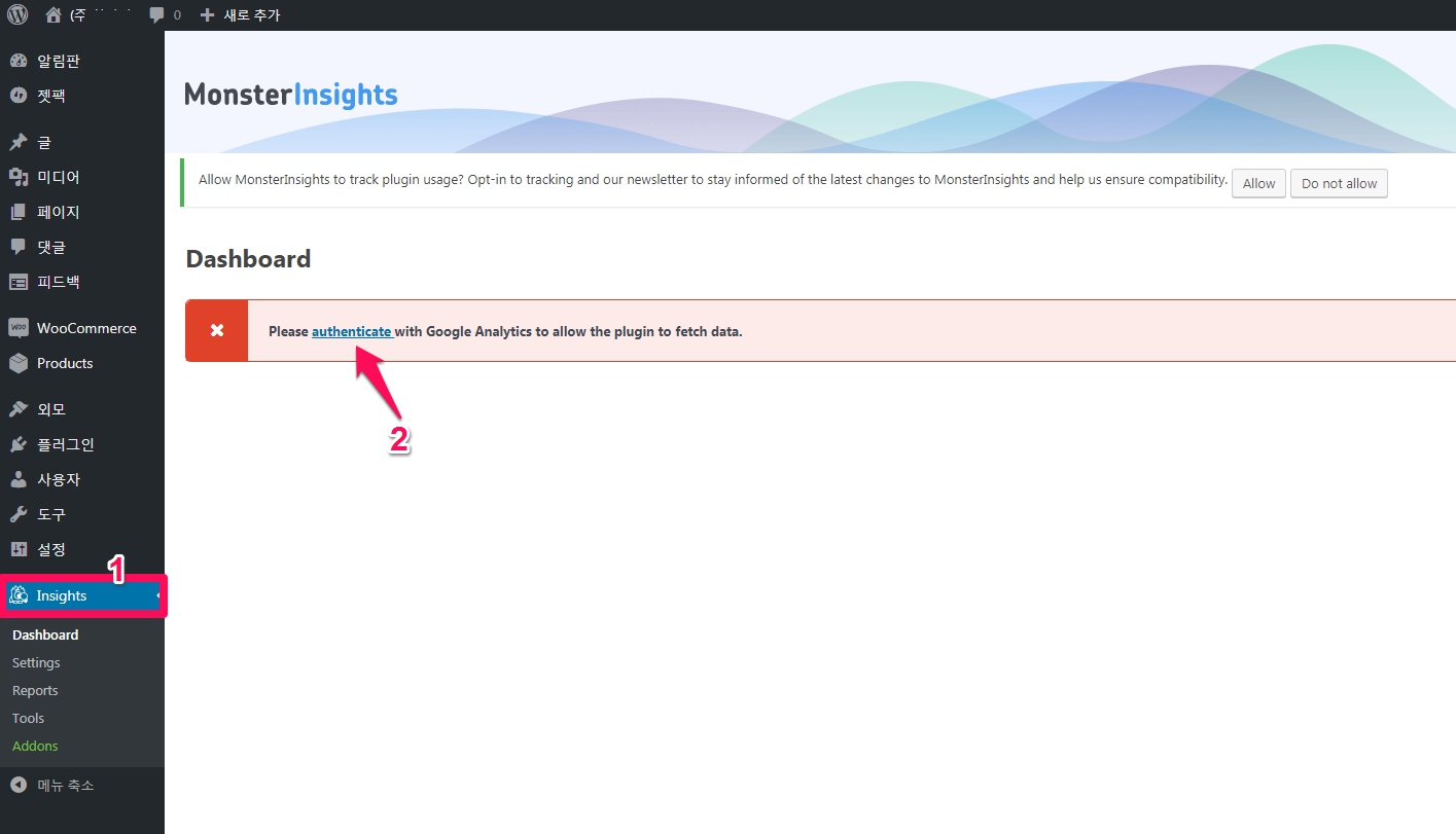 Google Analytics by MonsterInsights 플러그인 추가 설치 활성화하기_1