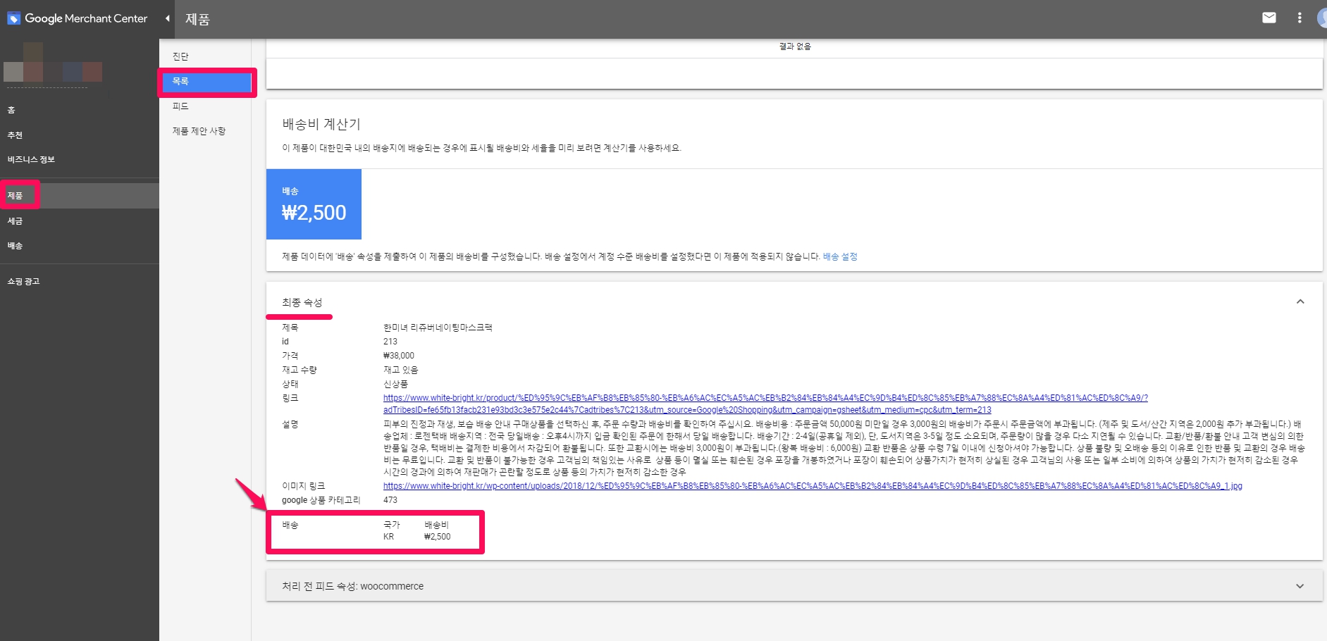 구글 머천트 센터에서 배송비 설정이 잘되었는지 확인하는 방법