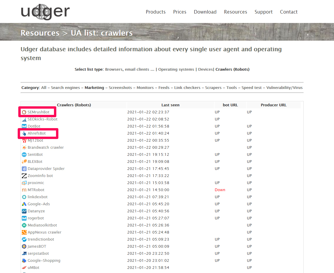 크롤러중 Marketing bot들로는 저에게는 친숙한 SEMrushBot, MOZ(DotBot 는 MOZ의 크롤러입니다.Rogerbot 은 Moz’s Campaign Crawler 입니다.), AhrefsBot 을 확인할 수 있었습니다. 자사/자신이 이용하는 마케팅 솔루션이 자주 크롤링을 하여 최신 데이터를 반영하는지 판단하고자 할때 여기서 확인해 보면 좋을 것 같습니다.