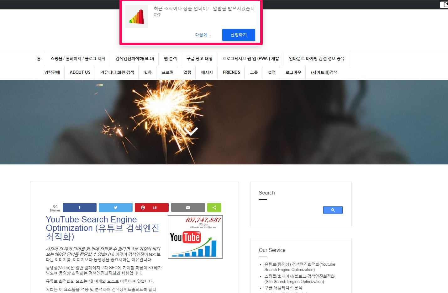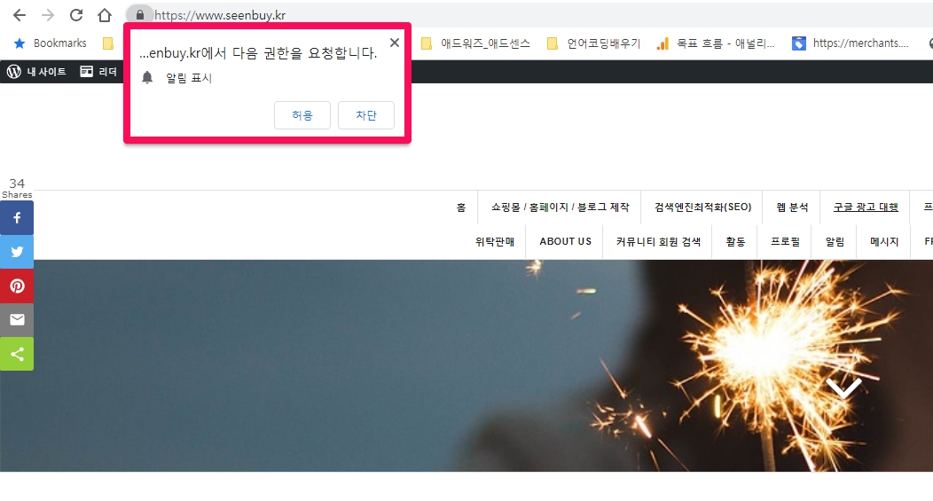 (인터넷익스플로워를 제외한) 모든 브라우저(크롬, 엣지, 사파리, 파이어폭스, 웨일, 오페라)에서 저희 사이트를 방문하시면 아래와 같이 수신 허용창이 뜹니다.