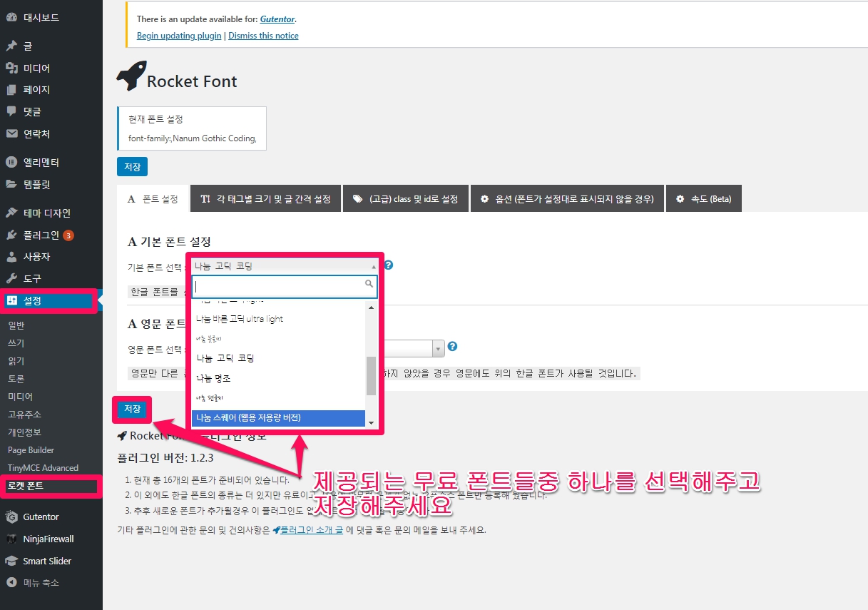 2. WordPress Course / Plugin / Rocket Font / Plugin that allows you to set Korean fonts as web fonts